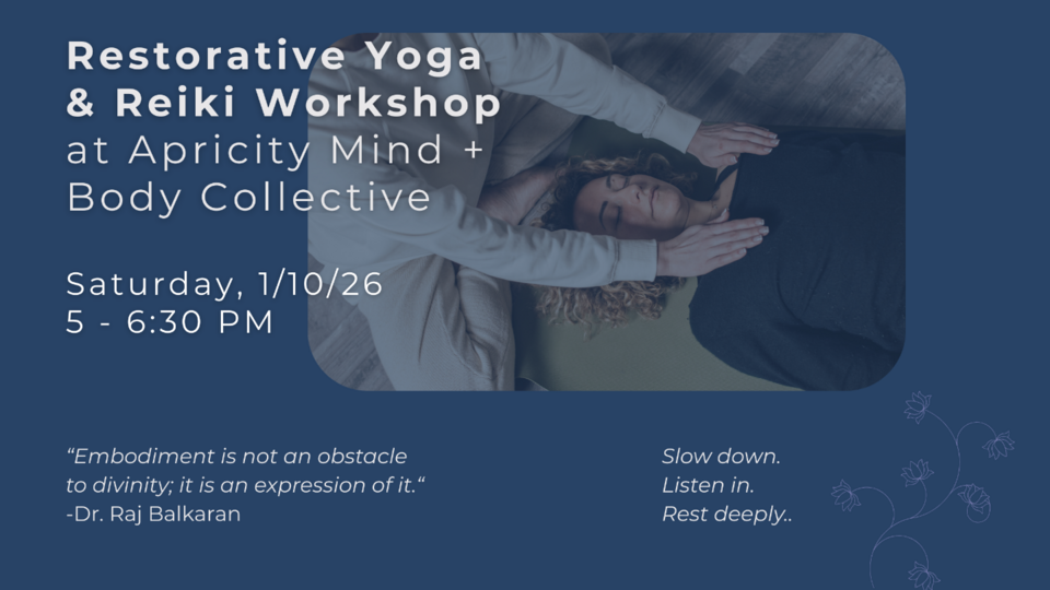 This in-person workshop is on Saturday, 1/10/26, from 5:00 - 6:30 PM, at Apricity Mind + Body Collective. Kasia will be joined by Amanda Fite from FORM Integrative Health, who’ll be offering Reiki during the workshop. Amanda took her Reiki level 1 and 2 from Robyn Devoist in 2009. Reiki is a form of energy work that uses the practitioner as a conduit to balance energy systems and ground the recipient. Space for this workshop is limited and intended to offer you individual care and attention. There is off-street parking behind the building. Cost is $55. Pass is non-refundable. All sales are final.